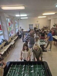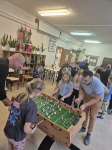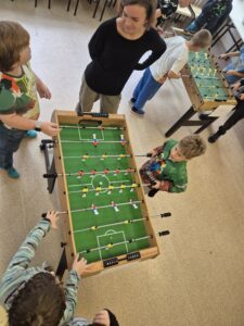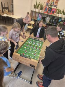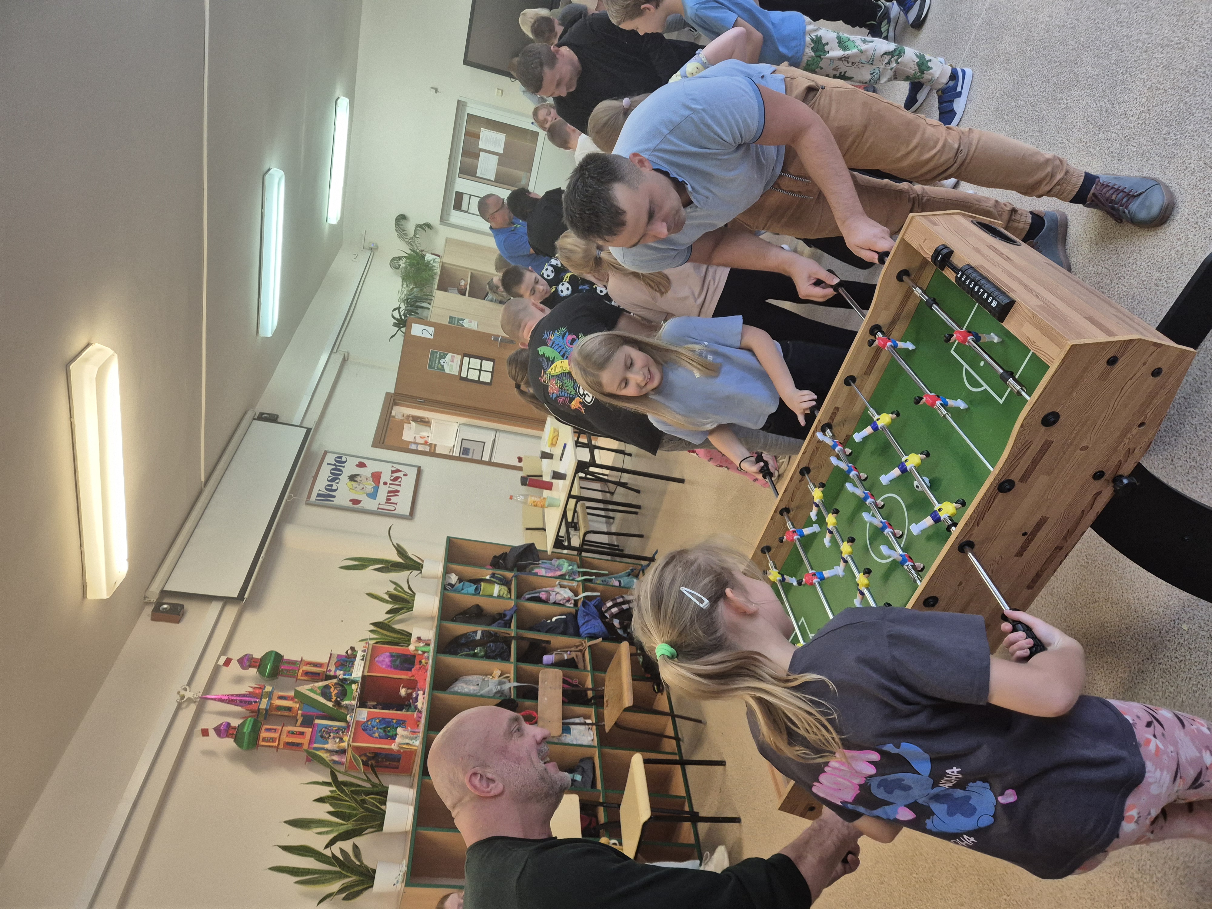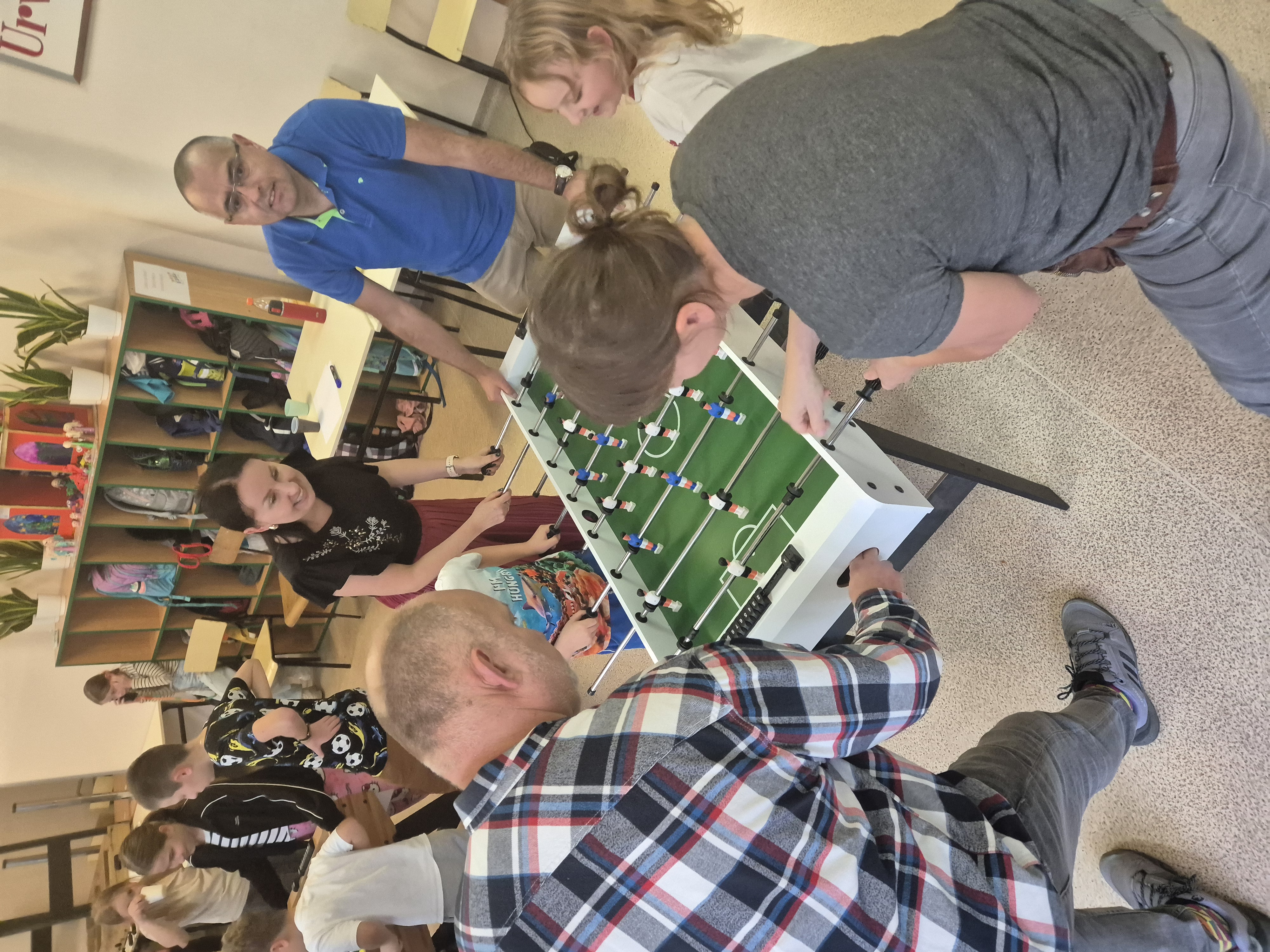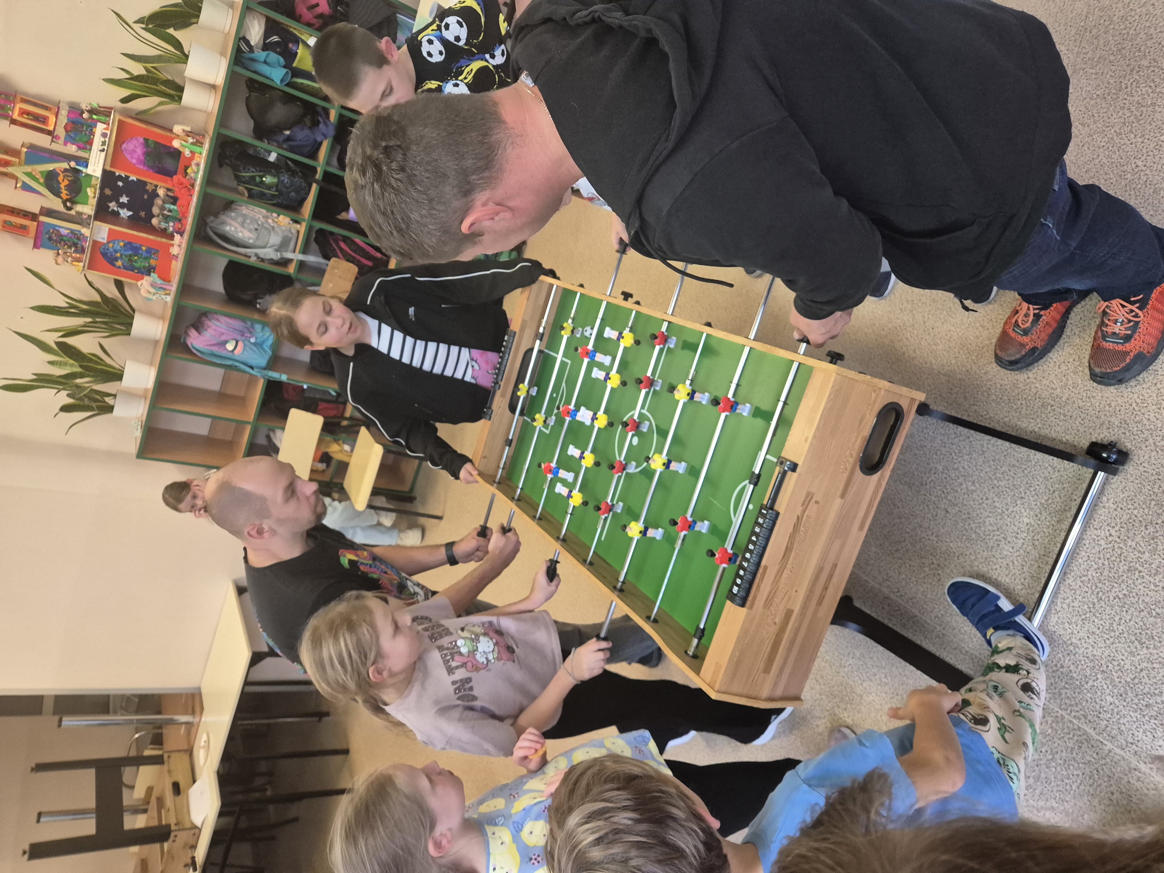 Dziś w naszej świetlicy Socjo odbył się coroczny rodzinny turniej w piłkarzyki! Emocji było co niemiara, a zawodnicy wykazali się ogromnym zaangażowaniem i sportowym duchem. Rozgrywki przebiegały w dwóch głównych kategoriach: dziecięcej (drużyny składające się tylko z dzieci) oraz rodzinnej (rodzic + dziecko).