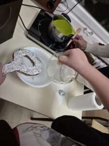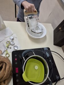 Dzieci z ogromnym zaangażowaniem brały udział w tradycyjnym laniu wosku, próbując odczytać z powstałych kształtów swoją przyszłość. Było dużo śmiechu, ciekawych interpretacji i fantastycznej zabawy.